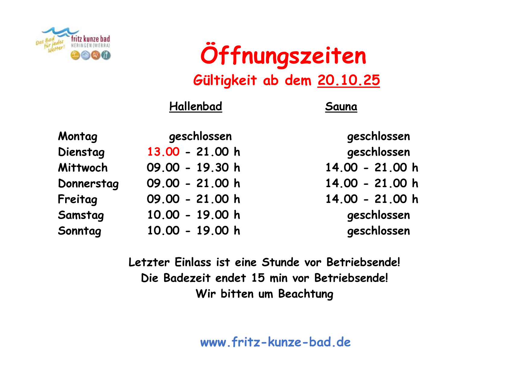 am Dienstag, ab dem 21.10.25, auf 13.00 - 21.00 Uhr.